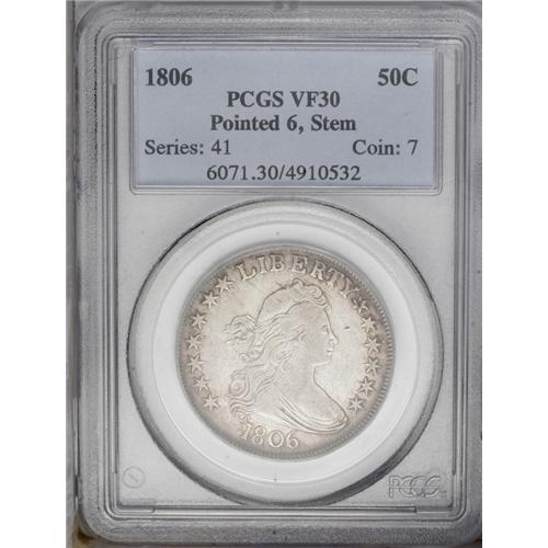 1806 50C Pointed 6, Stem VF30 PCGS. O-115, R.1. Golden 1806[50C] Pointed 6, Stem VF30 PCGS.