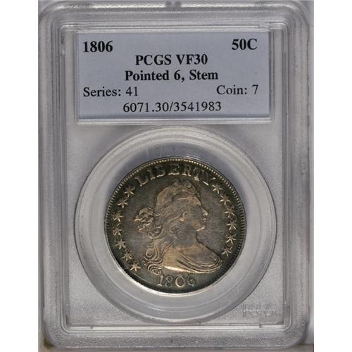1806 50C Pointed 6, Stem VF30 PCGS. O-115, R.1. This c