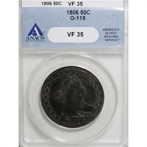 1806 50C Pointed 6, Stem VF35 ANACS O-115