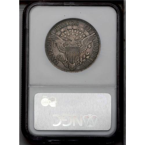 <B>1806<50C> Pointed 6, Stem XF40 NGC.</B></I> O-115, R.1. Obvious double cutting of TY in LIBERTY on the obverse. Lovely rose-gray color in the centers is accented by sea-green peripheral toning on both sides. Evenly and lightly worn for the grade; seemingly with possible aspirations to an AU designation. <BR><BR><B>Important notice:</B> Heritage usually auctions material at the rate of 200-250 lots per hour. On some occasions eBay Live bid software or the Internet may not be able to keep up with the pace of the auction. We recommend placing a realistic absentee bid now as insurance to avoid disappointment. Occasionally the auctioneer may eliminate or reject an eBay Live bid, and the auctioneer may also reopen a lot after the close of the eBay live bidding (usually because we missed an audience bid), and may reject your bid even if it shows you as the winning bidder. By bidding via eBay Live, you agree that Heritage may award the lot to another bidder at its sole discretion under the circumstances described above or any other reasonable circumstances. Since eBay bids are not shown to us until we open the lot on the floor, we treat those bids just like floor bids. In most cases the floor responds before the eBay bid is presented to us, due to Internet lag time, so for consistency we have made it a policy that floor bids are always considered first over tie eBay live bids. Also please note that all Heritage lots purchased through eBay Live carry a 20% Buyer's Premium. Please make sure you read the Terms and Conditions before you bid. This lot is being auctioned in conjunction with a live floor auction by Heritage Galleries & Auctioneers. All final auction and invoice information will be supplied by Heritage Galleries & Auctioneers, and all other information should be considered preliminary. Lot:1927 <BR><BR><B>Winning Notification and Billing:</B> After the FINAL session in this auction is complete, Heritage will send e-mail and snail mail invoices. This process normally takes several days. All final auction and invoice information will be supplied by Heritage Galleries & Auctioneers, and all other information should be considered preliminary. <BR><BR>This auction will be conducted on a live auction floor and over the Internet through eBay Live. If you choose to place an absentee bid, please take a moment to <font color='#0000ff'><u><a href='http://pages.ebay.com/liveauctions/help/before/laabsentee.html'>learn how eBay Live absentee bidding works</a></u></font><font color='#000000'>