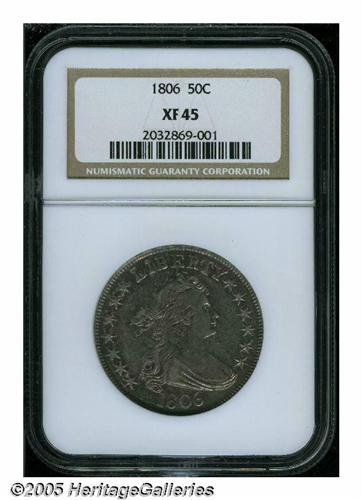 1806 50C Pointed 6, Stem XF45 NGC. O-115a, R.2. G