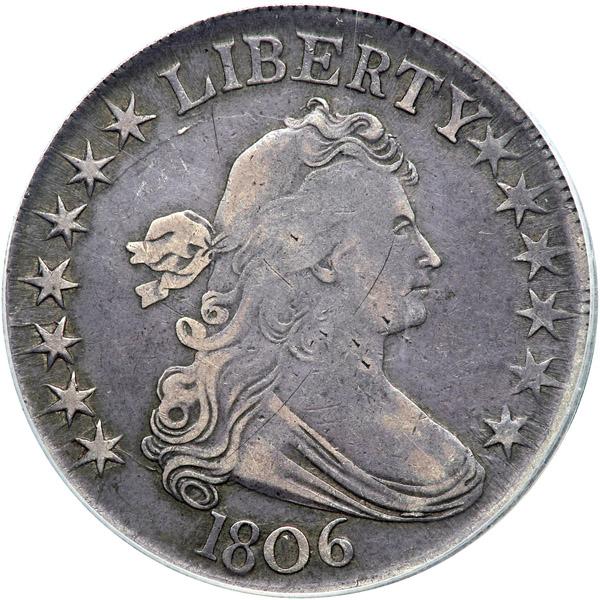 1806 Draped Bust Half Dollar. Pointed 6, stem through claw. . Overton-121. PCGS graded VF-25. A nice problem free example, all evenly toned (PCGS # 6071) .