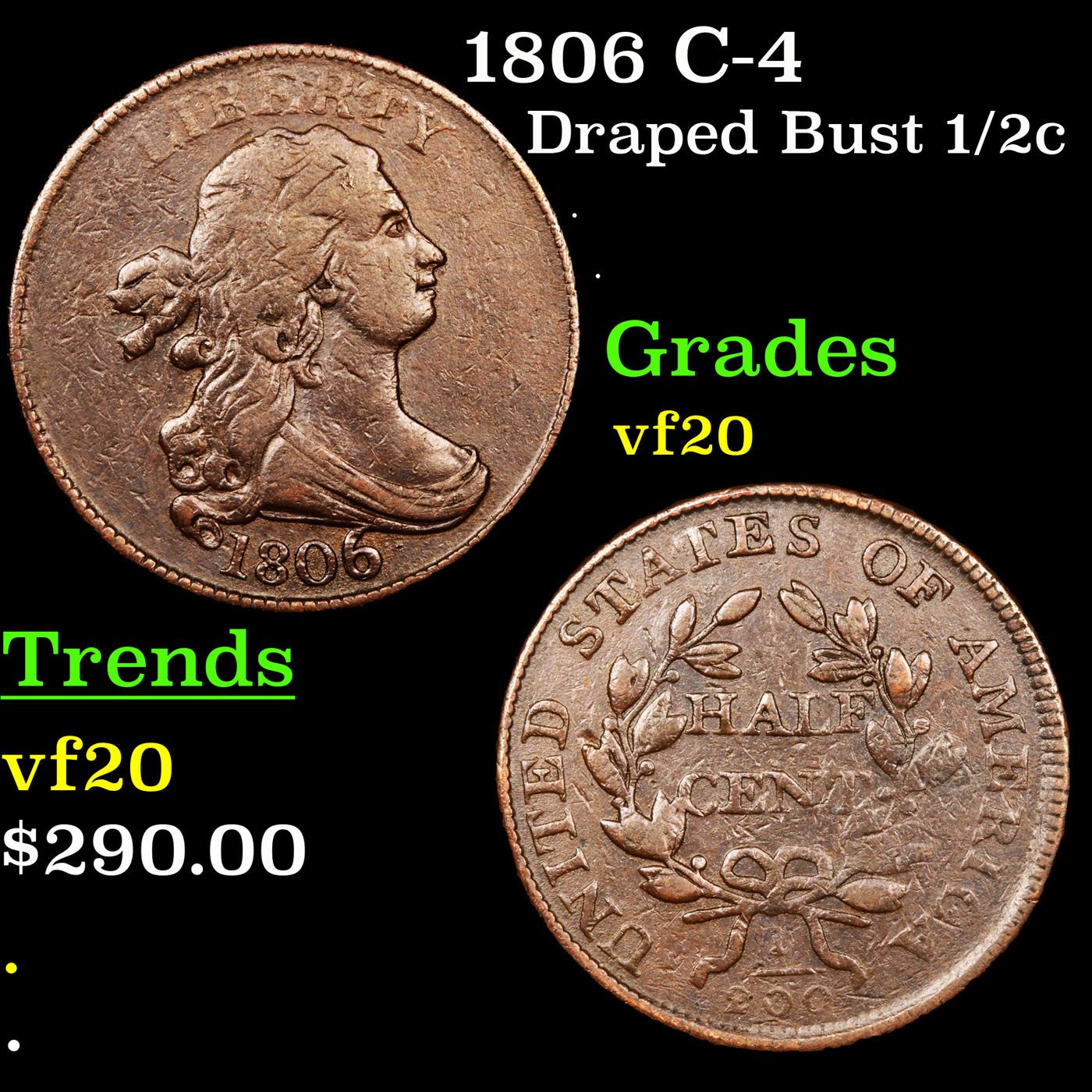 1806 C-4 Draped Bust Half Cent 1/2c Graded vf, very fine