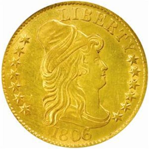 1806 Cap Bust Right $5. Round Top 6, Stars 7x6.