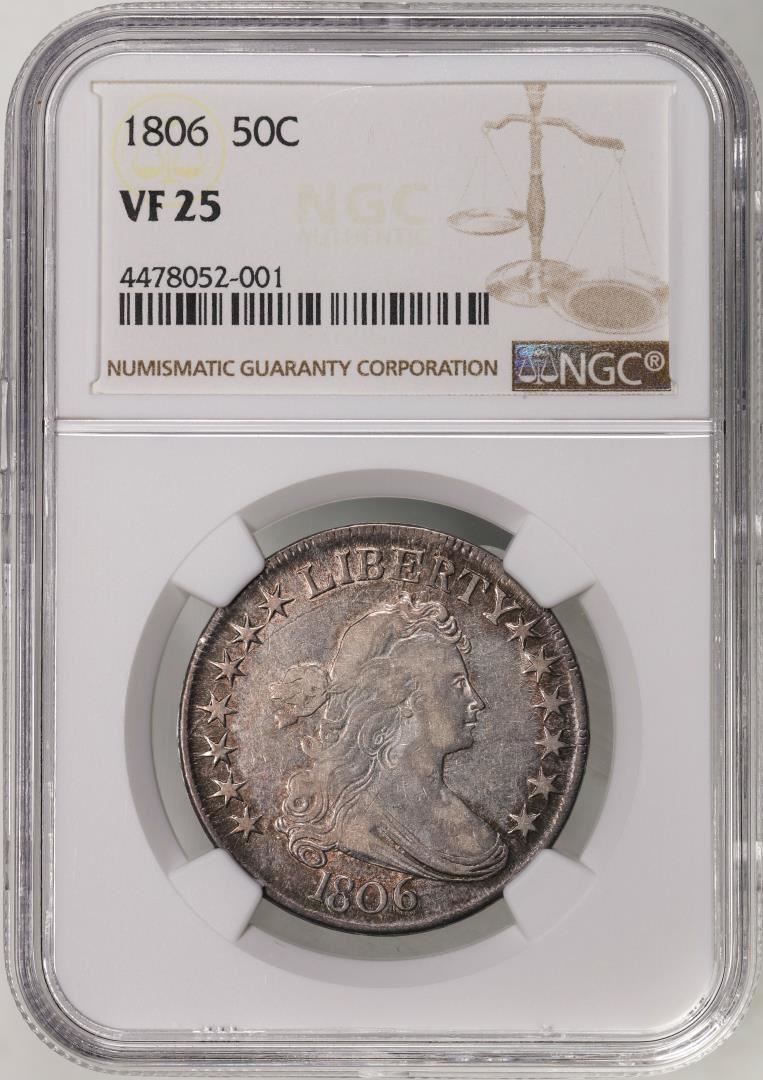 One 1806 Capped Bust Half Dollar Silver Coin NGC VF25. NGC Certified.