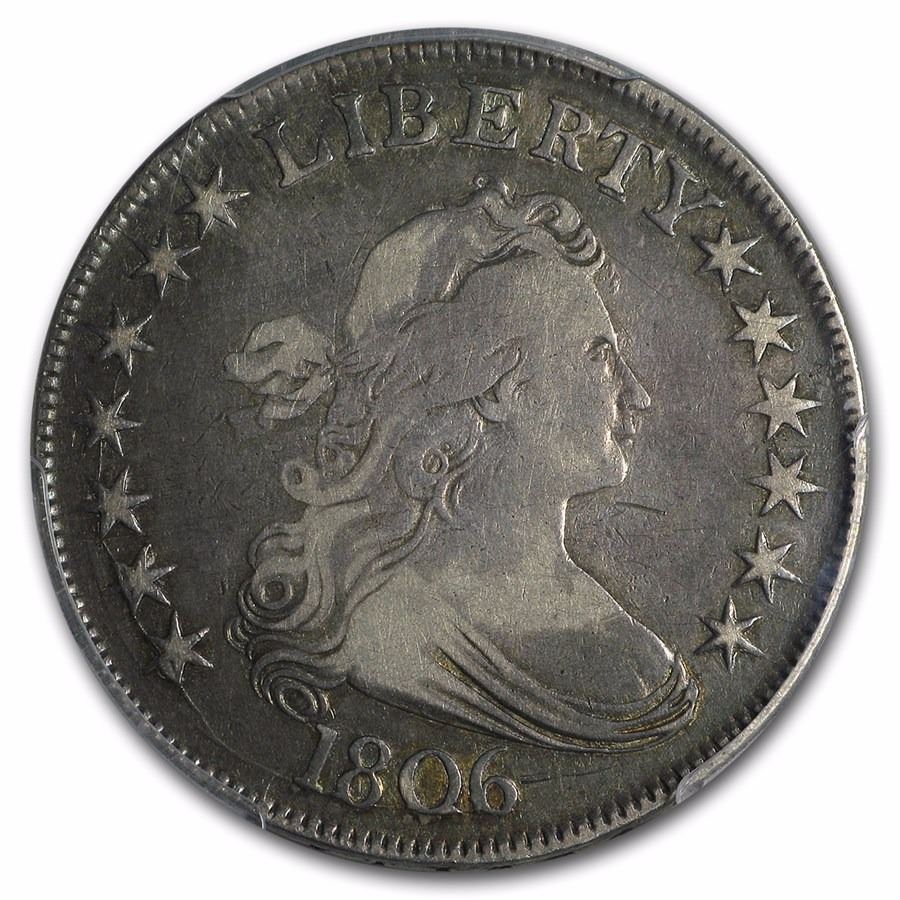 1806 Draped Bust Half Dollar Pointed 6, Stems Graded VF-20 PCGS 211 YEARS OLD