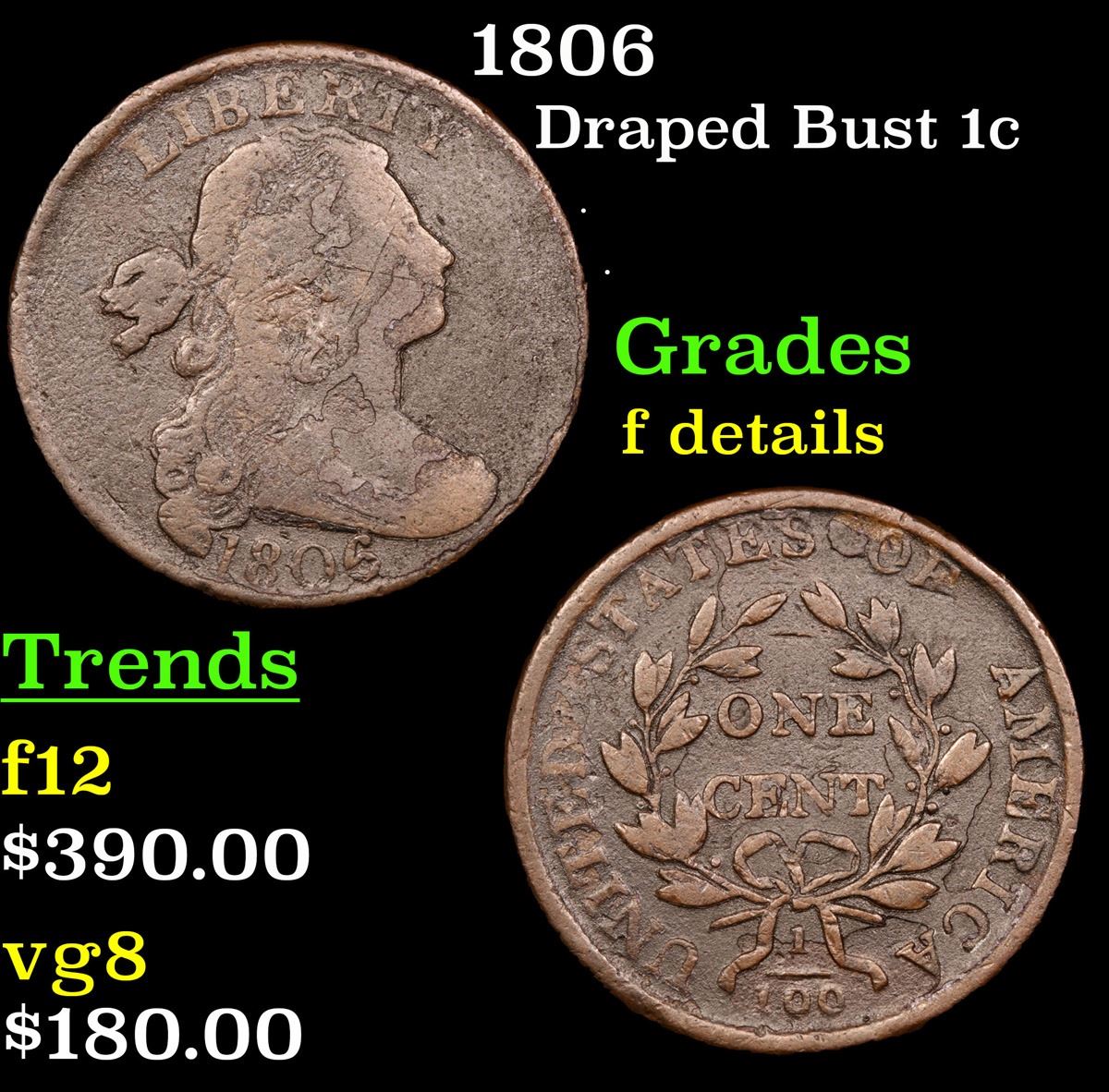 1806 . . Draped Bust Large Cent 1c Grades f details.