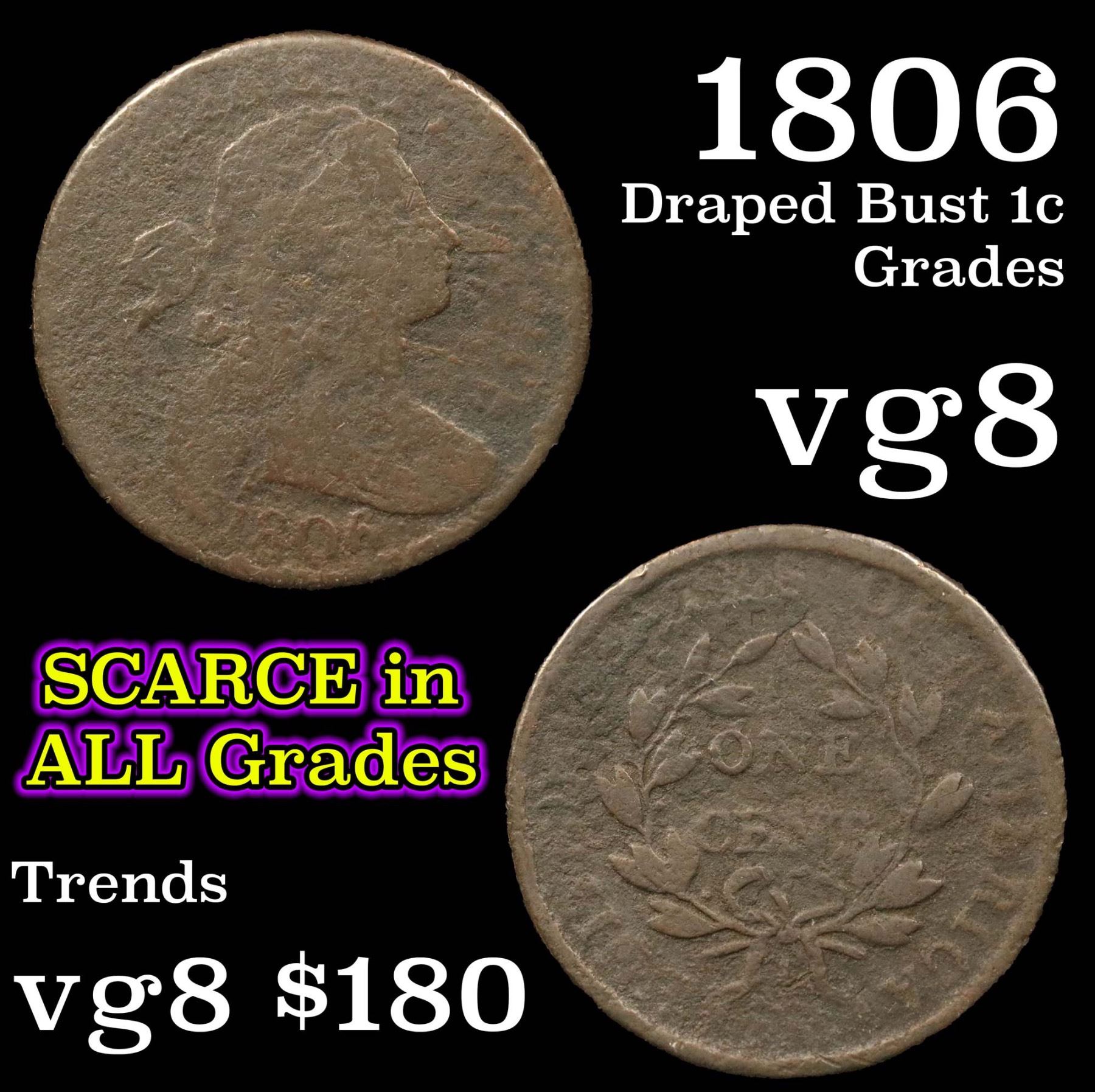 1806 Draped Bust Large Cent 1c Grades vg, very good.