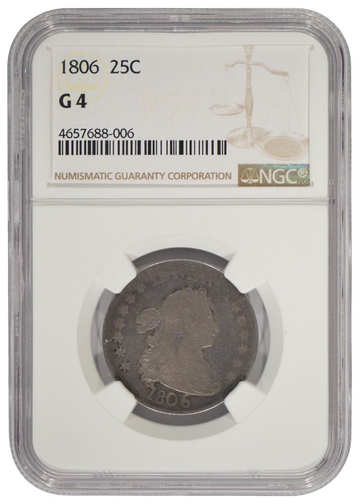 One 1806 Draped Bust Quarter Coin NGC G4.