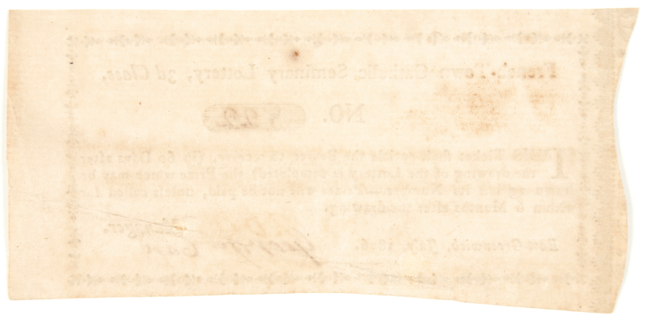 Rare 1806 French-Town Catholic Seminary Lottery Ticket