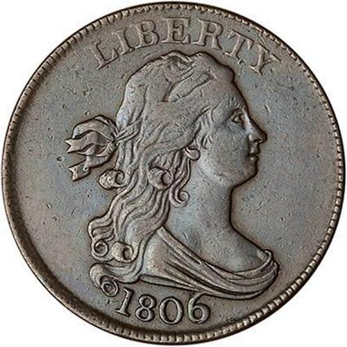 Slightly sharper but lightly cleaned and nicely retoned glossy bluish steel brown and chocolate. The only mark is a very fine hairline scratch from the hair under the E in LIBERTY down to the center of the cheek. E-MDS, Manley state 1.0. The repunching on the 6 is clear and the reverse is rotated 55 degrees CW. The bust tip is well struck, which is unusual for this variety, but the wreath at ICA is weakly impressed.