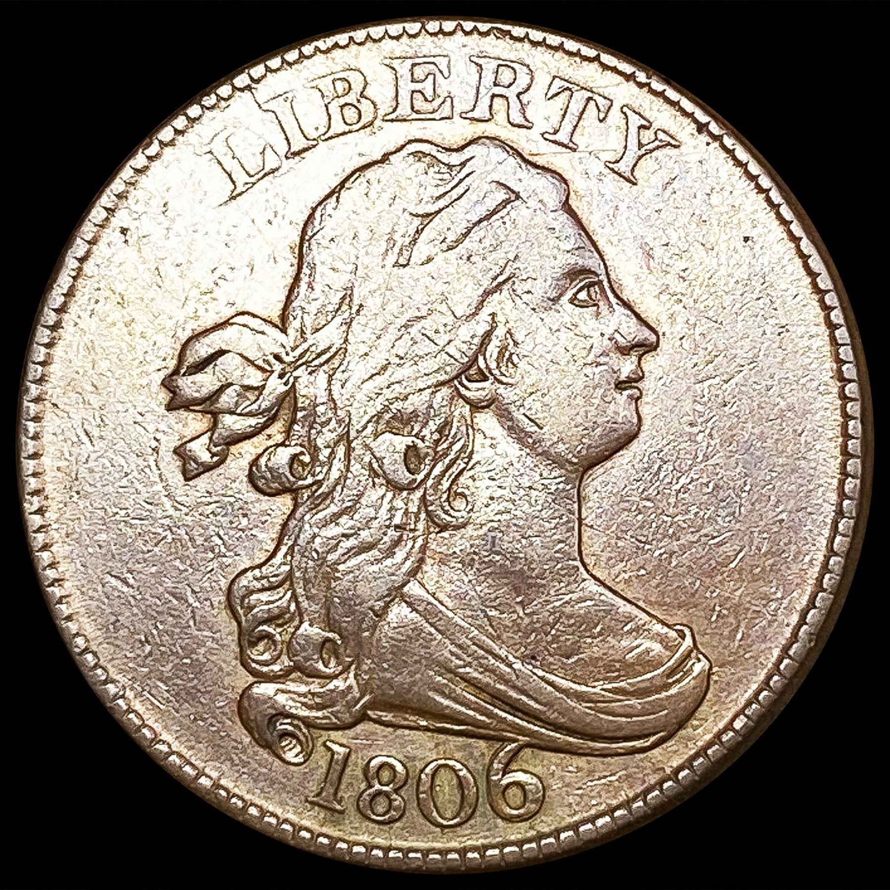 1806 Lg 6 Stems Draped Bust Half Cent ABOUT UNCIRC