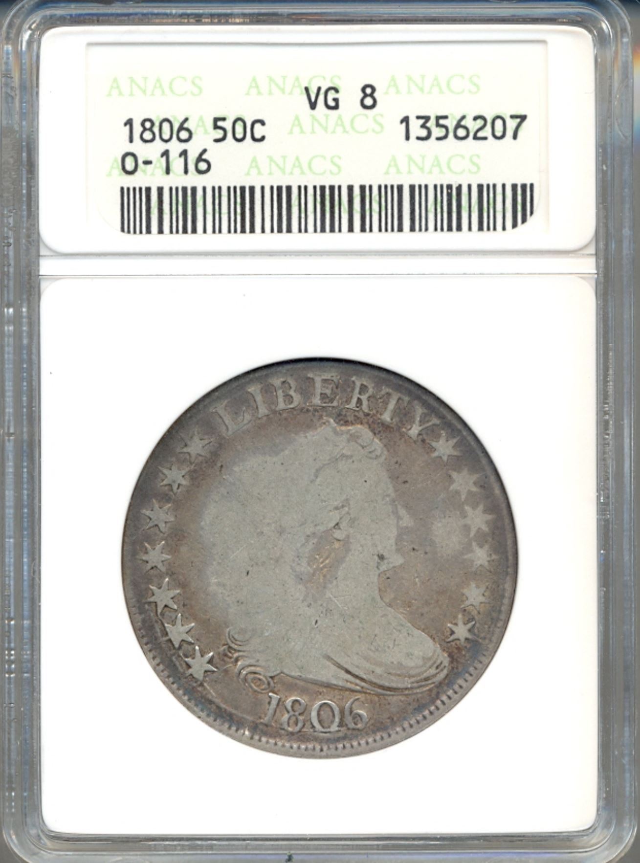 One 1806 Liberty Bust Half Dollar Coin ANACS VG8.