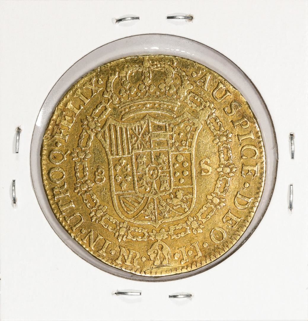 One 1806-NR JJ Columbia 8 Escudos Gold Coin.