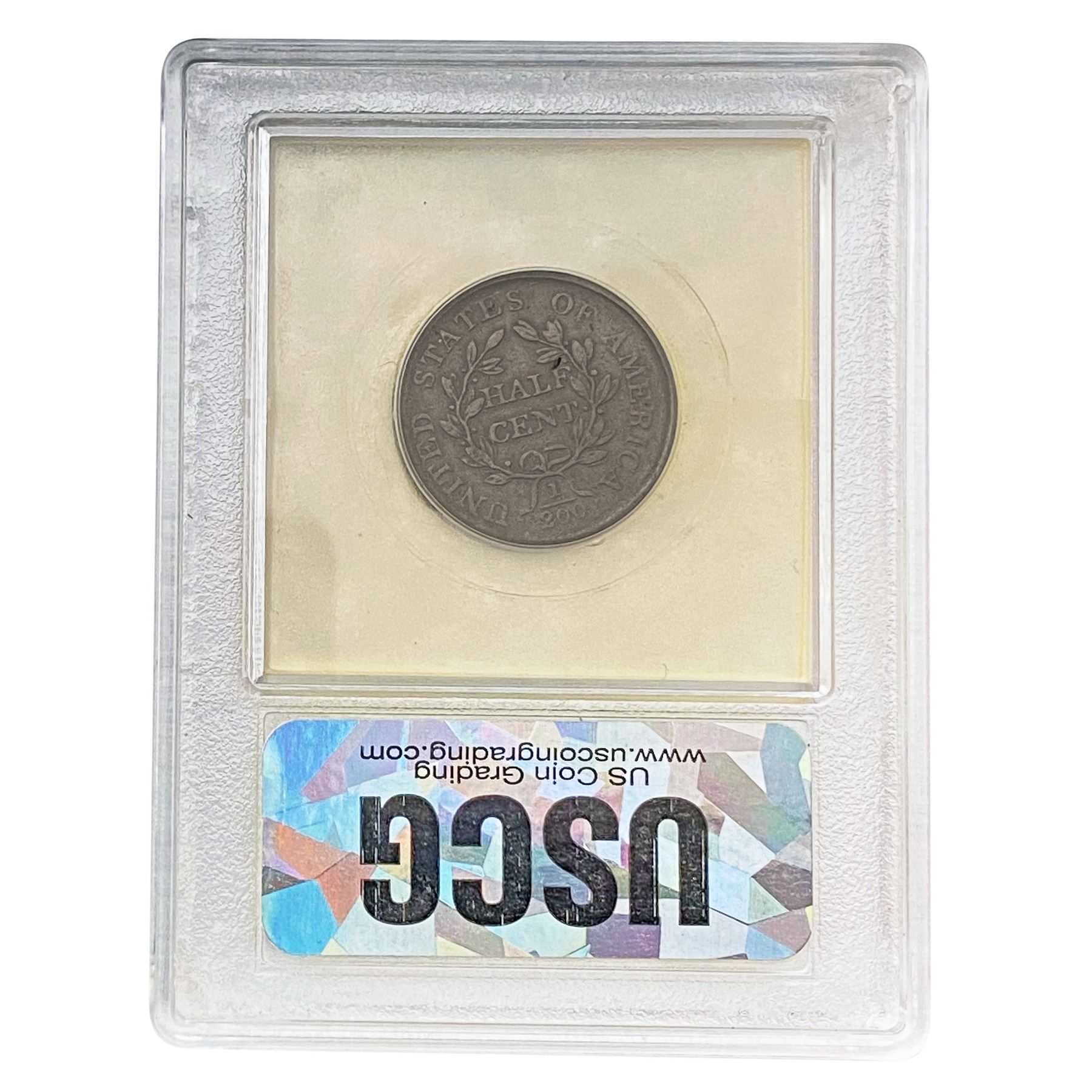 1806 Sm 6 No Stems Draped Bust Half Cent USCG VF35