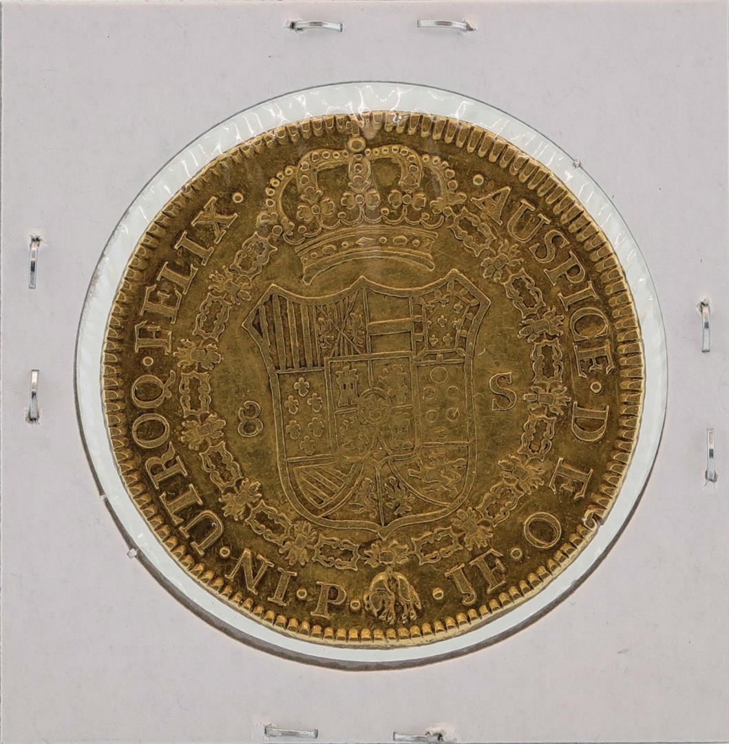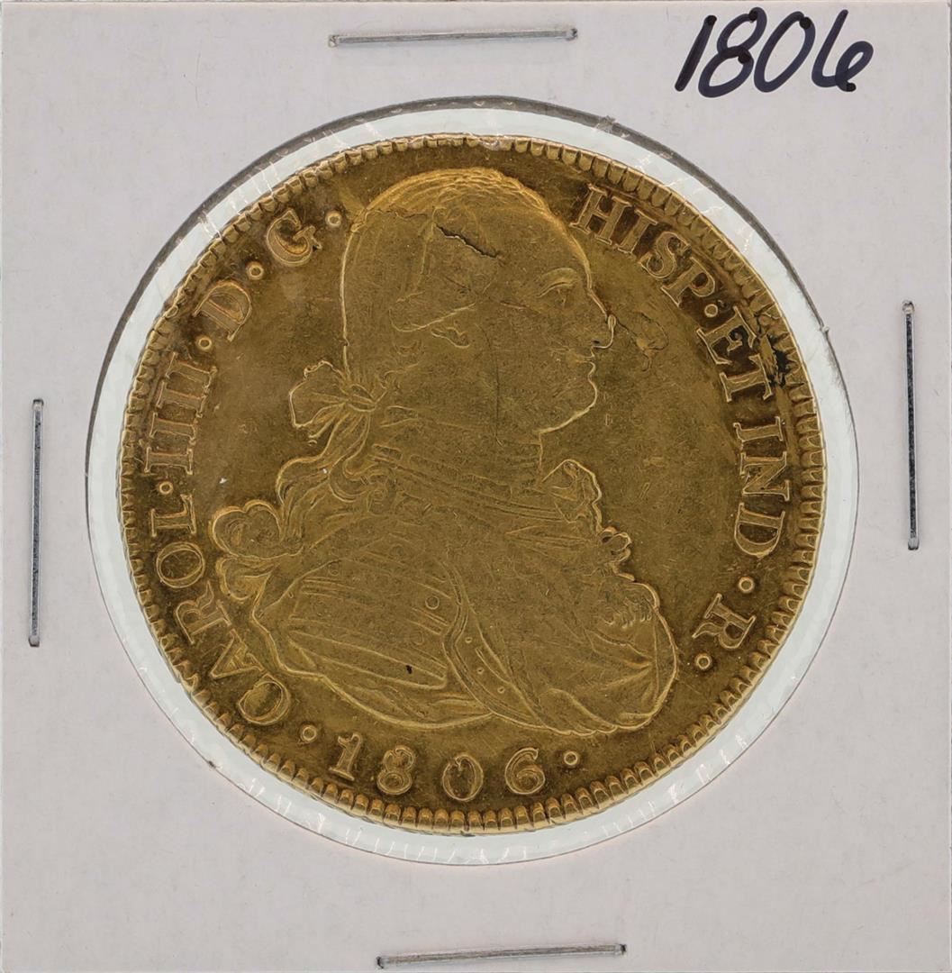 One 1806 Spanish 8 Escudos Carol III Gold Coin.