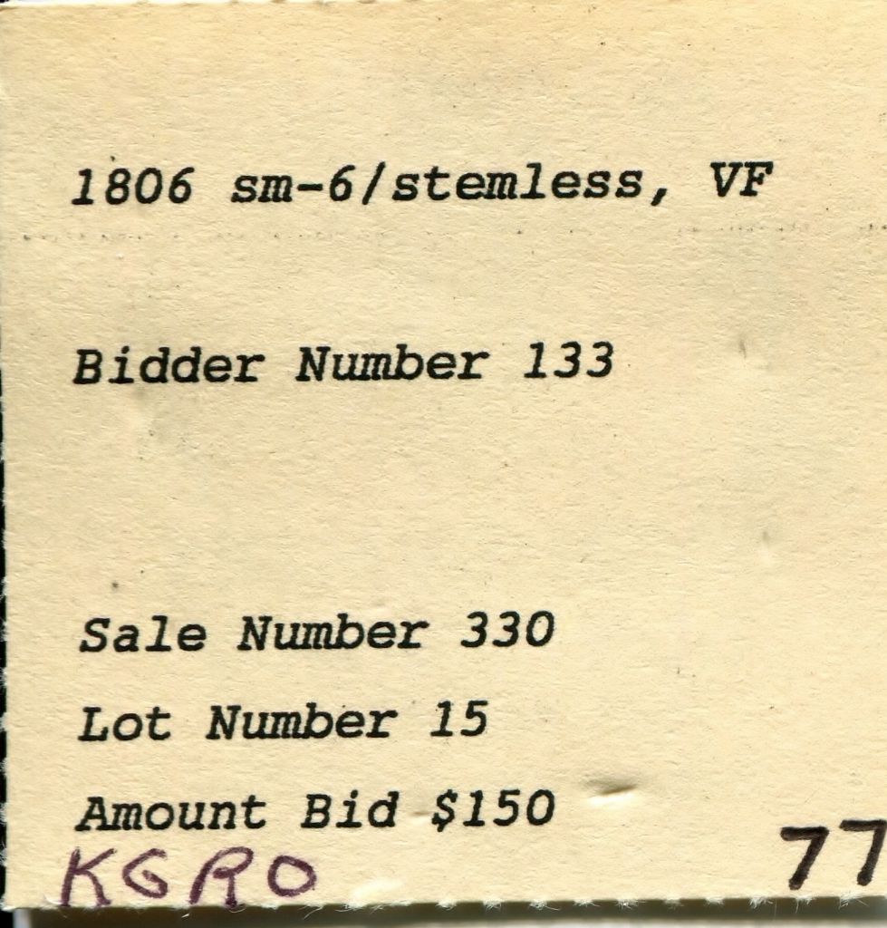 Listed as VF condition with a 2008 sales price of $150. Beautiful early coin with great details. Note: 2x2 is erroneously marked AG/G for this coin but grading paperwork more accurately lists it as VF. Judge for yourself.