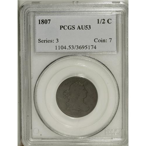 1807 1/2 C AU53 PCGS. C-1, B-1, R.1. Steel brown and m
