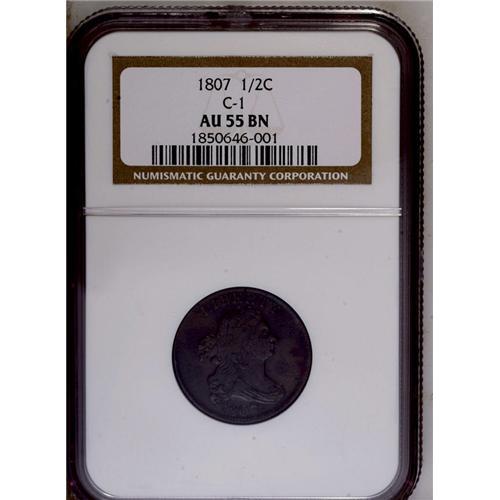 1807 1/2 C AU55 NGC. C-1, B-1, R.1, the only die pairi 1807