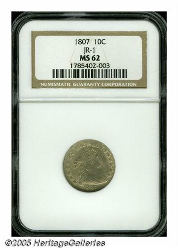1807 10C MS62 NGC. JR-1, R.2, the only dies. A lu