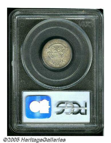 <B>1807<10C> MS63 PCGS.</B></I> JR-1, the only known die pairing of the year, R.2. This final year Heraldic Eagle issue is occasionally seen in Mint State, but most are rather drab examples that are invariably poorly struck on the left side. This brightly lustrous specimen is a welcome exception, with relatively sharp details over all but the left stars, as well as weakness on star 13. Liberty's hair strands display good definition, as do the eagle's breast feathers. Each side is visited by light orange-gold, grayish-blue, and lavender toning. A few grade-limiting marks are noted on Liberty's face and neck. The design elements are well centered on the planchet. Population: 42 in 63, 32 finer (6/05).<BR><I>From The Melrose Bay Collection.</B></I>