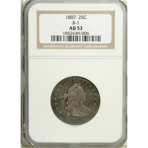 1807 25C AU53 NGC. B-1, R.3, Die State IV. This variet