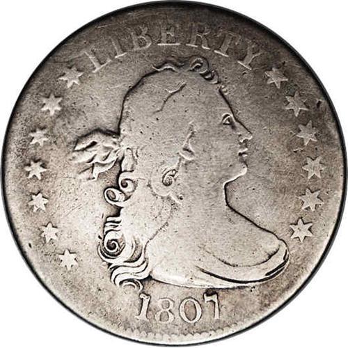<B>1807<25C> B-1, R.3--Improperly Cleaned, (Holed and Plugged)--NCS. VG Details. Die State IV+.</B></I> Perfect 1 in date; 5 merged with arrowheads. Light gray surfaces display wispy hairlines. Though not so indicated on the holder, a plug is located in the field to the right of stars 5 and 6.<BR><I>Ex: Martin Levy (9/1978).</B></I> Envelope Included.
