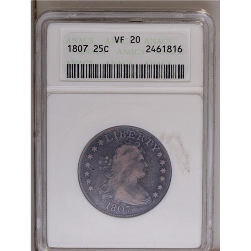 1807 25C VF20 ANACS. B-2, R.3. The scarcer of only two
