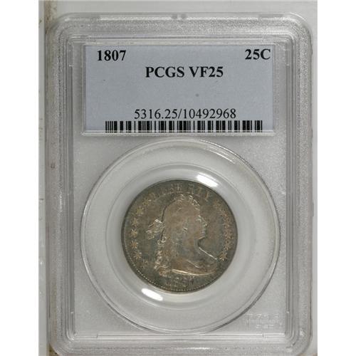 1807 25C VF25 PCGS. B-1, R.3. Cloudy silver-gray patin