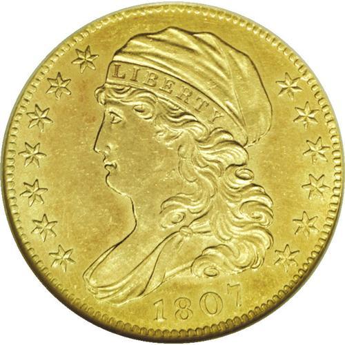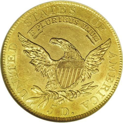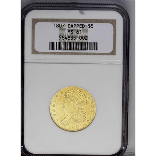 <B>1807 $5 Bust Left MS61 NGC.</B></I> Breen-6453, BD-8, R.2. A lovely lemon-tinged example of this scarce gold type, which was introduced in 1807. The fields and devices are refreshingly smooth, and the strike is full aside from trivial incompleteness on the eagle's claws. Luster illuminates design elements, and the eye appeal is exceptional for the grade.<BR><I>From The Jones Beach Collection.</B></I><BR><BR><b>Shipping:</b> Coin/Currency (<a target="_blank" href="http://www.heritageauctions.com/common/shipping.php">view shipping information</a>)