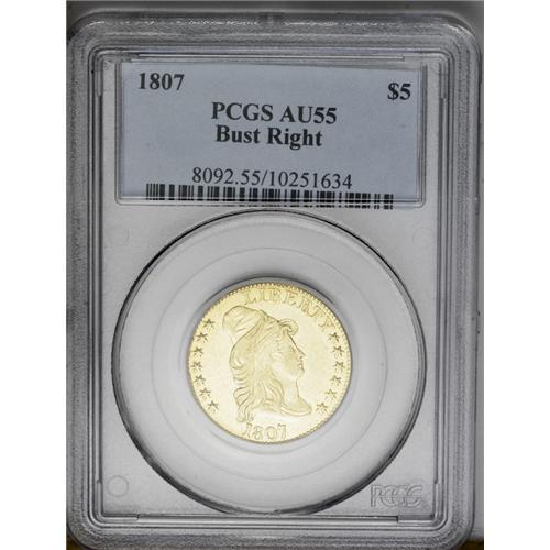 1807 $5 Bust Right AU55 PCGS. Small Date, Small Obvers 1807