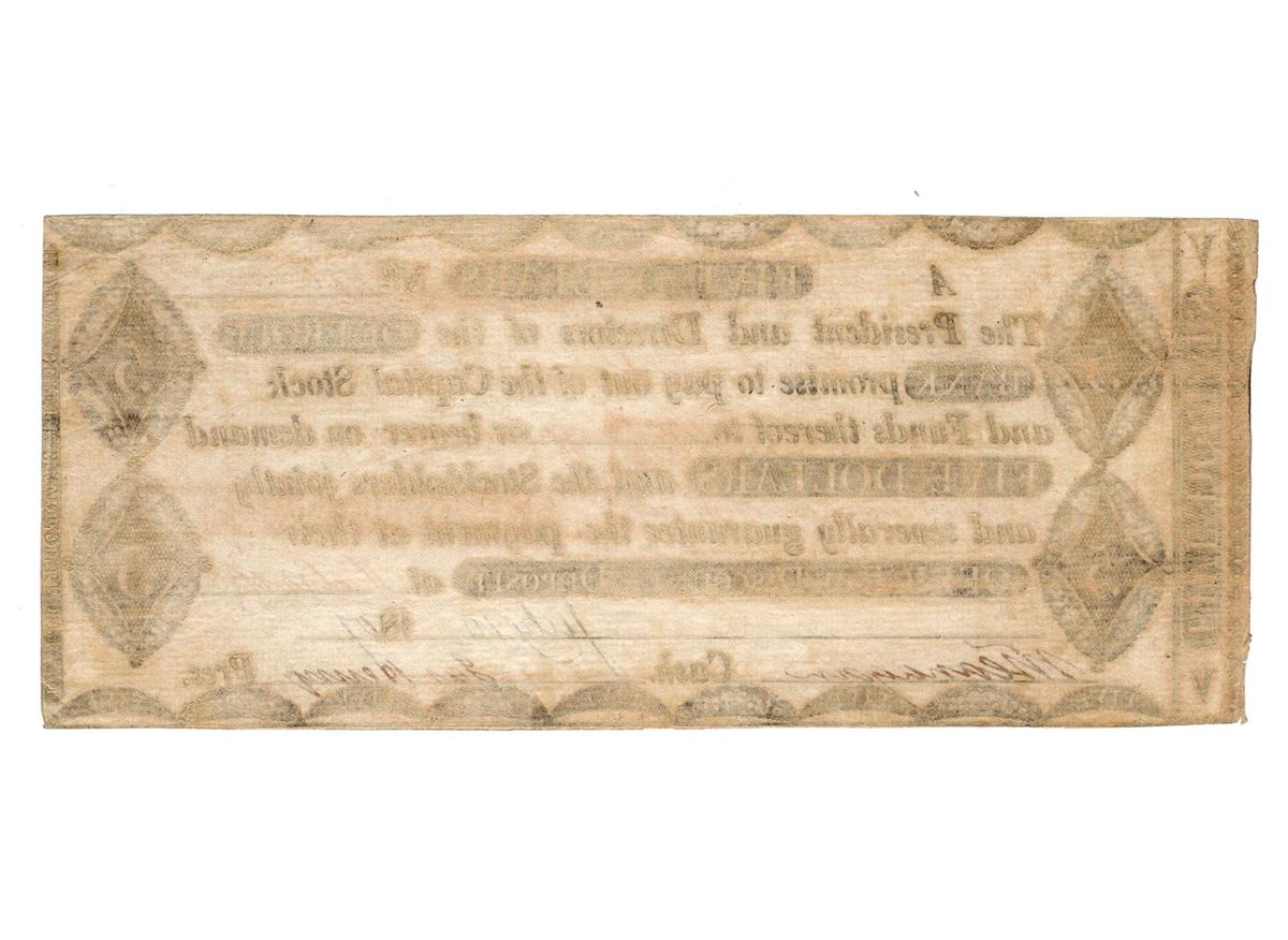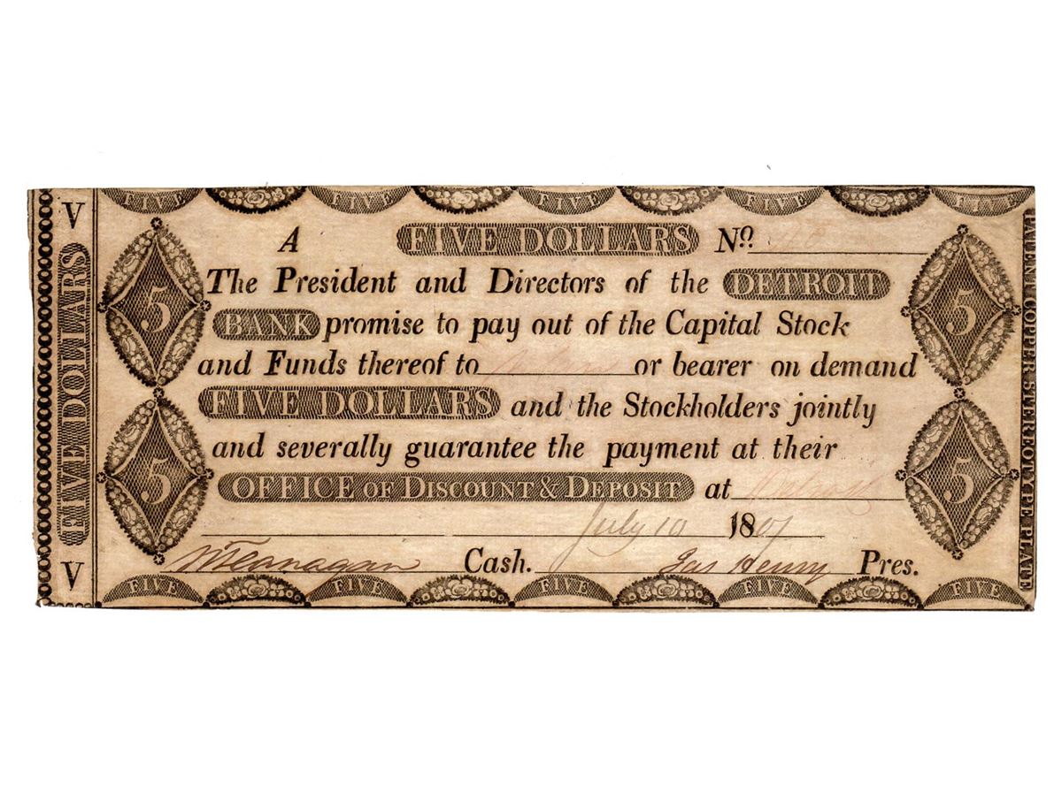 One 1807 $5 Detroit Bank Michigan Obsolete Bank Note.
