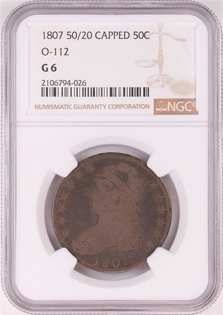 One 1807 50/20 Capped Bust Half Dollar Coin NGC G6 O-112. NGC Certified.