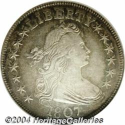 <table><tr><td><TABLE cellSpacing=0 cellPadding=0 width="100%" bgColor=#000000 border=0><TBODY> <TR><TD width="100%"><TABLE cellSpacing=1 cellPadding=3 width="100%" border=0><TBODY><TR><TD width="100%" bgColor=#79735c><FONT face=arial color=#ffffff size=3><B>Description</B> </FONT></TD></TR><TR><TD width="100%" bgColor=#ffffff><FONT face=arial size=2><B>1807 50C Draped Bust AU50 NGC.</B></I> O-110, R.2. The first obverse star is entered low, and several wispy die cracks connect the peripheral legends and stars. Aqua, pearl-gray, and mauve colors endow this crisp representative. The reverse is refreshingly free from contact, while the right obverse field offers faint slide marks from brief circulation and Liberty's hair ribbons have a hint of granular surface. </FONT></TD></TR></TBODY></TABLE></TD></TR></TBODY></TABLE><BR><A name=PricesRealized></A><TABLE cellSpacing=0 cellPadding=0 width="100%" bgColor=#000000 border=0><TBODY><TR><TD width="100%"><TABLE cellSpacing=1 cellPadding=3 width="100%" border=0><TBODY><TR><TD width="100%" bgColor=#79735c><A name=PR><FONT face=arial color=#ffffff size=3><B>Previous Prices from Heritage Auctions</B> </FONT></A></TD></TR><TR><TD bgColor=#f6f6ed><TABLE cellSpacing=0 cellPadding=0 width="100%" border=1><TBODY><TR><TD align=middle width="33%"><B>Date</B></TD><TD align=middle width="33%"><B>Service</B></TD><TD align=middle width="33%"><B>Price</B></TD></TR><TR bgColor=whitesmoke><TD width="33%"><B>02/19/2002</B></TD><TD width="33%">ANACS</TD><TD width="33%">$1,437.50</TD></TR><TR bgColor=whitesmoke><TD width="33%"><B>07/29/2003</B></TD><TD width="33%">ANACS</TD><TD width="33%">$1,552.50</TD></TR><TR bgColor=whitesmoke><TD width="33%"><B>06/10/2000</B></TD><TD width="33%">PCGS</TD><TD width="33%">$1,552.50</TD></TR><TR bgColor=whitesmoke><TD width="33%"><B>08/07/1998</B></TD><TD width="33%">PCGS</TD><TD width="33%">$1,380.00</TD></TR><TR bgColor=whitesmoke><TD width="33%"><B>06/06/1997</B></TD><TD width="33%">PCGS</TD><TD width="33%">$1,247.75</TD></TR><TR bgColor=whitesmoke><TD width="33%"><B>08/19/1995</B></TD><TD width="33%">PCGS</TD><TD width="33%">$1,155.00</TD></TR><TR bgColor=whitesmoke><TD width="33%"><B>06/04/1993</B></TD><TD width="33%">PCGS</TD><TD width="33%">$1,705.00</TD></TR><TR bgColor=whitesmoke><TD width="33%"><B>07/01/1997</B></TD><TD width="33%">PCGS</TD><TD width="33%">$935.00</TD></TR><TR bgColor=whitesmoke><TD width="33%"><B>03/01/1997</B></TD><TD width="33%">ANACS</TD><TD width="33%">$1,210.00</TD></TR><TR bgColor=whitesmoke><TD width="33%"><B>11/01/1999</B></TD><TD width="33%">NGC</TD><TD width="33%">$1,150.00</TD></TR><TR bgColor=whitesmoke><TD width="33%"><B>03/01/1996</B></TD><TD width="33%">PCGS</TD><TD width="33%">$1,430.00</TD></TR></TBODY></TABLE></TD></TR><TR><TD bgColor=#ffffff><FONT face=arial size=1 ?>PLEASE NOTE: All prices realized reflect the final hammer price PLUS the buyer's premium in auctions that charge a buyer's premium. Each item has a notation at the top of the listing indicating whether that lot included a buyer's premium. Example: A item that sells with a final hammer price of $100 and a 20% buyer's premium will display with a price realized of $120. All information listed is intended to be as accurate as possible, but errors are possible. Please use this guide carefully and inform us of any inaccuracies. </FONT></TD></TR></TBODY></TABLE></TD></TR></TBODY></TABLE><BR><TABLE cellSpacing=0 cellPadding=0 width="100%" bgColor=#000000 border=0><TBODY><TR><TD width="100%"><TABLE cellSpacing=1 cellPadding=3 width="100%" border=0><TBODY><TR><TD width="100%" bgColor=#79735c colSpan=6><FONT face=arial color=#ffffff size=3><B>Price Guide*</B> </FONT></TD></TR><TR bgColor=#f6f6ed><TD align=middle><B>Grade</B> </TD><TD align=middle><B>Coin World<BR>(Trends)</B> </TD><TD align=middle><B>Numismedia<BR>Retail</B> </TD><TD align=middle><B>Numismedia<BR>Wholesale</B> </TD><TD align=middle><B>Coin<BR>Universe</B> </TD><TD align=middle><B>Heritage<BR>Value Index</B> </TD></TR><TR bgColor=#ffffff><TD align=middle>45</TD><TD align=right>$1,000.00</TD><TD align=right>---</TD><TD align=right>---</TD><TD align=right>---</TD><TD align=right>$988.79</TD></TR><TR style="FONT-WEIGHT: bold" bgColor=#cccfdd><TD align=middle>50</TD><TD align=right>$2,500.00</TD><TD align=right>---</TD><TD align=right>---</TD><TD align=right>---</TD><TD align=right>$1,593.33</TD></TR><TR bgColor=#ffffff><TD align=middle>53</TD><TD align=right>---</TD><TD align=right>---</TD><TD align=right>---</TD><TD align=right>---</TD><TD align=right>$1,901.46</TD></TR><TR bgColor=#ffffff><TD colSpan=6><FONT size=1>*All information listed is intended to be as accurate as possible, but errors are possible. No item may be returned or refused based on this information which is provided as a service to our customers. You should contact each pricing source directly to determine the accuracy of this information. </FONT></TD></TR></TBODY></TABLE></TD></TR></TBODY></TABLE><BR><TABLE cellSpacing=0 cellPadding=0 width="100%" bgColor=#000000 border=0><TBODY><TR><TD width="100%"><TABLE cellSpacing=1 cellPadding=3 width="100%" border=0><TBODY><TR><TD width="100%" bgColor=#79735c><FONT face=arial color=#ffffff size=3><B>Population Guide</B> </FONT></TD></TR><TR bgColor=#ffffff><TD align=middle><!-- Begin Output of Population Grid--><TABLE cellSpacing=0 cellPadding=0 width="100%" border=0><TBODY><TR><TD vAlign=center><TABLE cellSpacing=0 width="100%" border=1 cellsadding="3"><TBODY><TR><TD vAlign=center><TABLE cellSpacing=0 cellPadding=3 width="100%" border=1><TBODY><TR><TD vAlign=center align=middle bgColor=#f0f1e8 colSpan=2 <CENTER><FONT face=Arial size=2><B>PCGS Pop </B></FONT><CENTER></CENTER></TD><TD vAlign=center align=middle bgColor=#f0f1e8 colSpan=2><CENTER><FONT face=Arial size=2><B>NGC Pop</B></CENTER></FONT></TD></TR><TR><TD vAlign=center><FONT face=Arial size=2>(50)</FONT> </TD><TD vAlign=center align=right><FONT face=Arial size=2>43</FONT> </TD><TD vAlign=center><FONT f