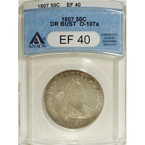 1807 50C Draped Bust XF40 ANACS. O-107a, High R.4. Gol
