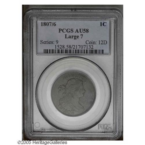 1807/6 1C Large 7 AU58 PCGS. S-273, R.1. A popular var 1807/6[1C] Large 7 AU58 PCGS.