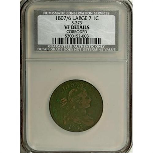 <B>1807/6 1C Large 7--Corroded--NCS. VF Details.</B></I> S-273. NGC Census: (0/27). PCGS Population (5/40). Mintage: 829,221. Numismedia Wsl. Price for NGC/PCGS coin in VF20: $375. (#1528)<BR><BR><B>Coin Engraver:</B> Robert Scot<BR><BR><b>Shipping:</b> Coins & Currency (<a target="_blank" href="http://www.heritageauctions.com/common/shipping.php">view shipping information</a>)