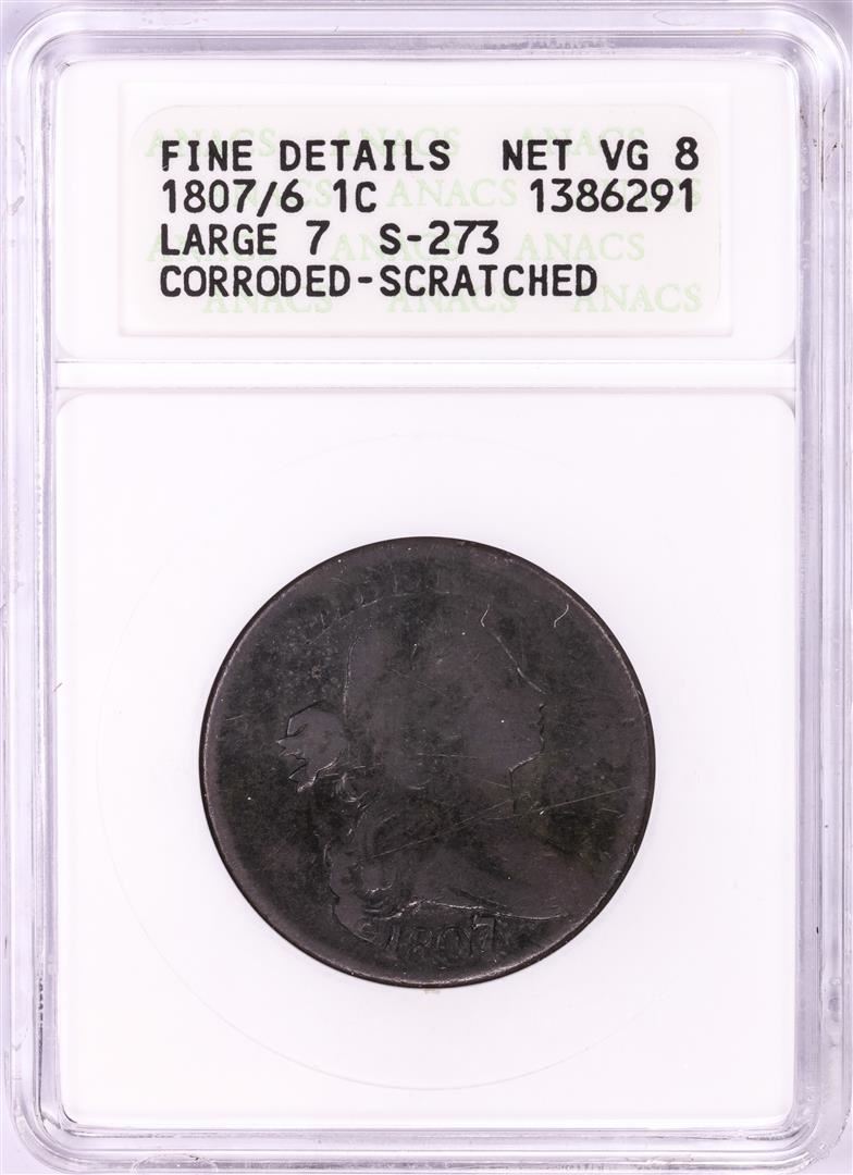 One 1807/6 Large 7 Draped Bust Large Cent Coin ANACS Fine Details. ANACS Certified.