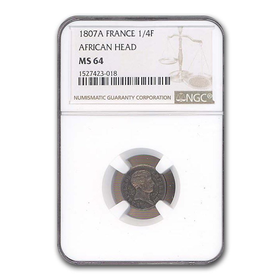 1807-A France 1/4 Franc Napoleon African Head MS-64 NGC