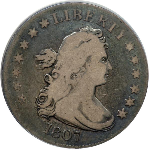 1807. ANACS graded VG-10. Nice clean surfaces for the grade with even antique bluish-grey toning. In a new style ANACS holder.