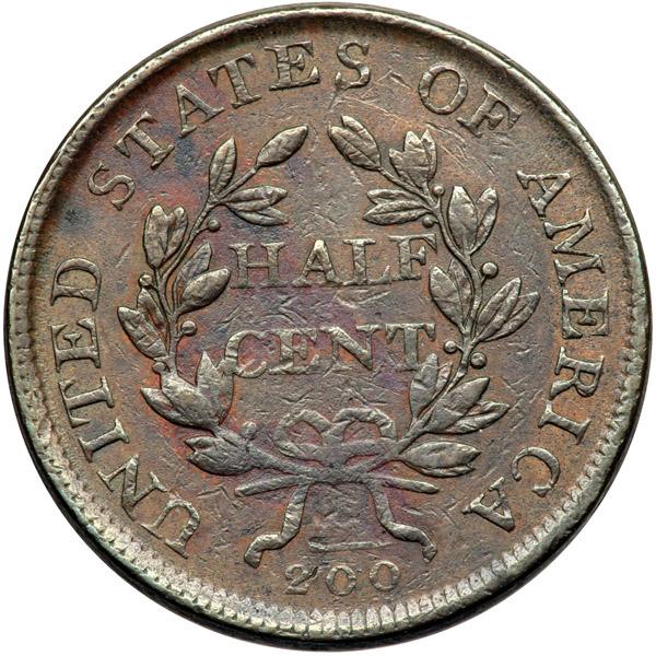 1807 C-1 R1 VF25. Sharpness EF40 but covered with small nicks, none notable but far too many for the sharpness grade. A tiny diagonal nick in the field over the tip of the nose can help identify this piece. Glossy chocolate and steel with frosty lighter brown in protected areas. There are a couple small puffs of darker olive toning on both sides and a swipe of reddish chocolate in the center of the reverse. Rare EDS, Manley state 1.0. Similar to the preceding lot, but the clashmarks and die polishing lines found on the obverse of this example are fading. The dentils around the obverse, however, are complete. The reverse is rotated 15 degrees CCW. Davy #07.1.32.