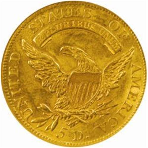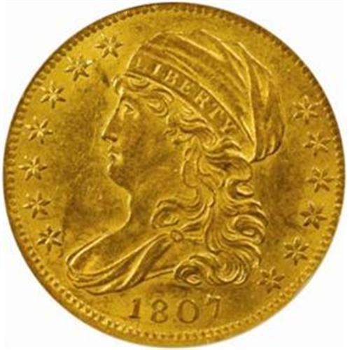 <style type="text/css"> body, td, th { font-family: Arial, Helvetica, sans-serif; font-size: 12px; color: #482424; margin: 0px; padding: 0px; } #header { background-image: url(http://www.bowersandmerena.com/ebay/images/template_v3_01.gif); clear: both; background-color: #590303; border-top-width: 2px; border-top-style: solid; border-top-color: #B38C4F;}#header #header_wrapper { height: 75px; clear: both; width: 800px; margin-right: auto; margin-left: auto; background-image: url(http://www.bowersandmerena.com/ebay/images/template_v3_03.gif); background-repeat: no-repeat; background-position: right; color: #F3EDCC;}#header #header_wrapper #header_logo { float: left; height: 75px; width: 444px; background-image: url(http://www.bowersandmerena.com/ebay/images/template_v3_02.gif); background-repeat: no-repeat; font-size: 10px; text-transform: capitalize; color: #B38C4F;}#header #header_wrapper #header_right { float: left; height: 75px; width: 356px; text-align: right;}#header #header_wrapper #header_right #headerLoginBtn { margin-bottom: 30px;}#header #header_wrapper #header_right input#txtSearch { color: #B49056; border: 1px solid #B49056; width: 175px; padding-top: 3px; padding-right: 3px; padding-bottom: 4px; padding-left: 3px;}#nav { height: 37px; background-image: url(http://www.bowersandmerena.com/ebay/images/template_v3_05.gif); clear: both;}#nav #nav_wrapper { height: 35px; width: 800px; margin-right: auto; margin-left: auto; border-left-width: 1px; border-left-style: solid; border-left-color: #B38C4F;}#nav #nav_wrapper a { padding-right: 15px; padding-left: 15px; border-right-width: 1px; border-right-style: solid; border-right-color: #B38C4F; height: 25px; padding-top: 10px; display: block; float: left; text-decoration: none; font-weight: bold; color: #5D0303;}#nav #nav_wrapper a:hover { color: #B38C4F;}#nav #nav_wrapper #search { float: right; padding-top: 7px;}#nav #nav_wrapper #search #txtSearch { font-family: Arial, Helvetica, sans-serif; font-size: 10px; text-transform: uppercase; color: #D2AE75; border: 1px solid #B38C4F; padding: 3px;}#content_bgd { background-image: url(http://www.bowersandmerena.com/ebay/images/template_v3_09.gif); background-repeat: repeat-y; background-position: center; padding-top: 15px; padding-bottom: 15px; background-color: #FBFBDB;}#content_wrapper { clear: both; height: auto; width: 800px; margin-right: auto; margin-left: auto;}.LotDetailWhite{ line-height:normal; font-size:13px; font-family: arial,helvetica,sans-serif; color: White; font-weight: bold;}.LotDetailInformation{ line-height:normal; font-size: 13px; font-family: arial,helvetica,sans-serif;}.LotDetailMessage{ line-height:normal; font-size: 13px; font-family: arial,helvetica,sans-serif; color: red;}}tr.HeaderAuctionTitle td { color: #000000; font-weight: bold; padding: 2px; background-image: url(http://www.bowersandmerena.com/ebay/images/template_v3_05.gif); background-repeat: repeat-x; border-bottom-width: 1px; border-bottom-style: solid; border-bottom-color: #B38C4F;}table.AuctionSummary a, table.AuctionSummary a:link, table.AuctionSummary a:visited { color: #0000FF; text-decoration: none;}}td.tableHeaderLeft { border-left-width: 1px; border-left-style: solid; border-left-color: #B38C4F;}td.tableHeaderRight { border-right-width: 1px; border-right-style: solid; border-right-color: #B38C4F;}td.tableCellMiddle { border-left-width: 1px; border-left-style: solid; border-left-color: #B38C4F; border-right-width: 1px; border-right-style: solid; border-right-color: #B38C4F; padding: 5px;}tr.footer td { border-top-width: 1px; border-top-style: solid; border-top-color: #B38C4F;}</style></head><body><div id="header"> <div id="header_wrapper"> <div id="header_logo"> </div> <div id="header_right"> </div> </div></div><div id="nav"> <div id="nav_wrapper"> <a href="http://www.bowersandmerena.com">Our eBayLive Auctions</a> <a href="#PaymentInfo">Payment Information</a> <a href="#ShippingInfo">Shipping Information</a> <a href="#About">About Bowers and Merena</a> </div></div><div id="content_bgd"> <div id="content_wrapper"> <table width="100%" border="0" cellpadding="5" cellspacing="0" class="AuctionSummary"> <tbody> <tr class="HeaderAuctionTitle" style="height: 25px;"> <td align="left" class="tableHeaderLeft" > </td> <td align="center" class="tableHeaderRight"> <span style="font-size: large;">Lot #1101. 1807 Capped Bust Left Half Eagle. BD-8, HBCC-3109, Miller-101. Rarity-2. AU-53 (NGC). OH (Old Holder).</span> </td> </tr> <tr> <td colspan="3" class="tableCellMiddle"> There are two varieties known for the 1807 Capped Bust Left Half Eagle, and BD-2 is by far the more frequently encountered in today's market. Enough coins have survived, in fact, that this first-year die marriage has long been popular among gold type collectors. Mostly orange-gold in color, this coin exhibits partial satin luster and overall sharp definition to both sides. Scattered abrasions are commensurate with the assigned grade, and some slightly deeper tinting that outlines the reverse devices increases the relief to that side as seen by the unaided eye. All-in-all, this is a pleasing AU that is sure to have no difficulty eliciting a solid bid on auction day.