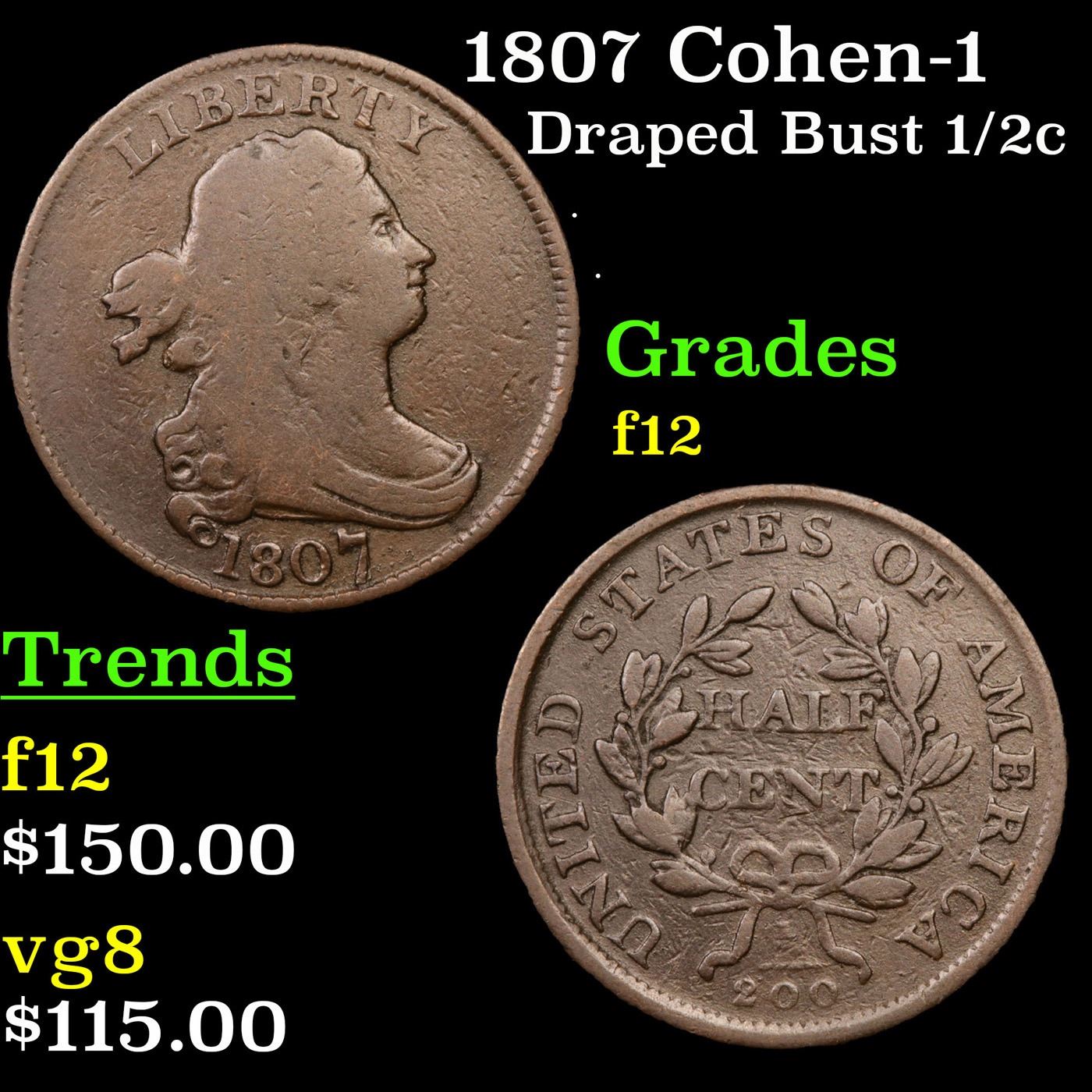 1807 Cohen-1 Draped Bust Half Cent 1/2c Grades f, fine