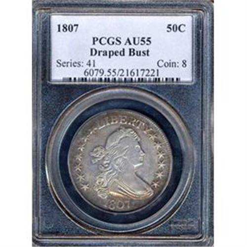 Some russet brown toning adheres around the stars, date and legends, with areas of weak strike typical for the upper hair waves (at Liberty's brow line) and marginal weakness on some of the stars at left. A popular early half dollar and the last issue to use the heraldic style eagle first introduced on this denomination in 1801.