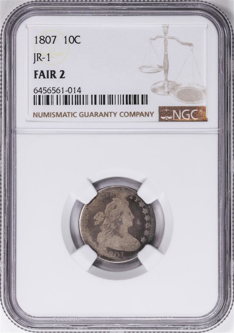 One 1807 Draped Bust Dime Coin NGC JR-1 Fair 2. NGC Certified.
