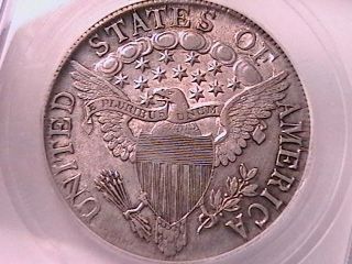 1807 Draped Bust Half AU55 Clnd ICG. The reverse shows full breast feathers, wing and shield detail. It is a lustrous toned down light gray. Wonderful eye appeal. An exciting coin that is so rare that is hardly ever comes up for sale.