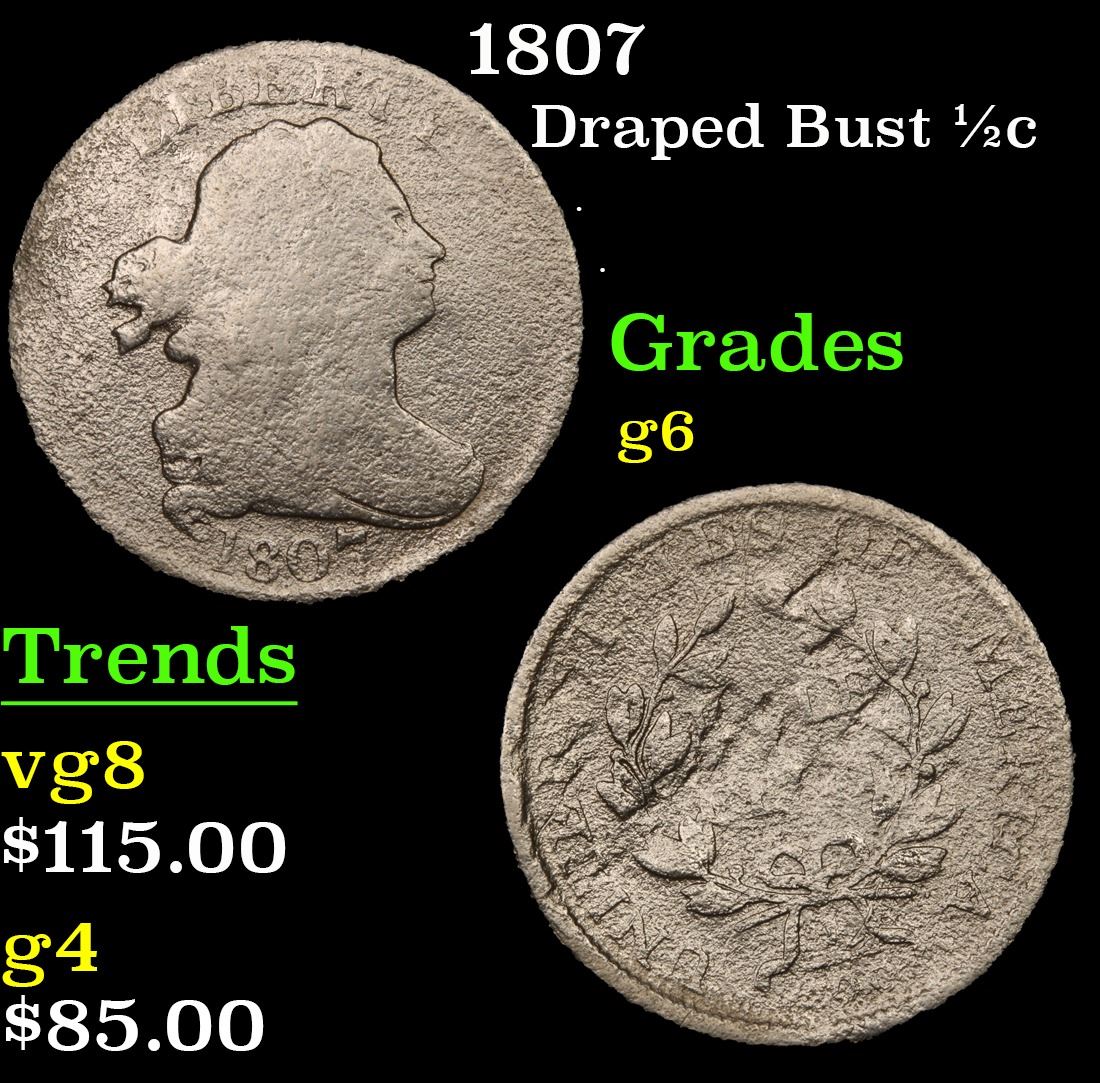 1807 Draped Bust Half Cent 1/2c Grades g+.