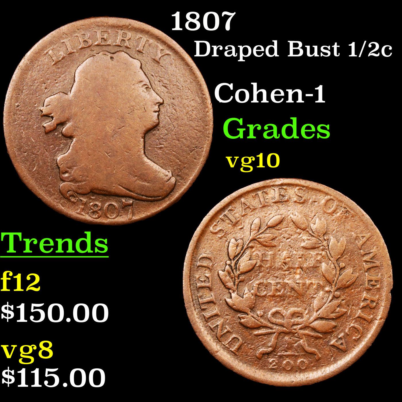 1807 Draped Bust Half Cent 1/2c Grades vg+.