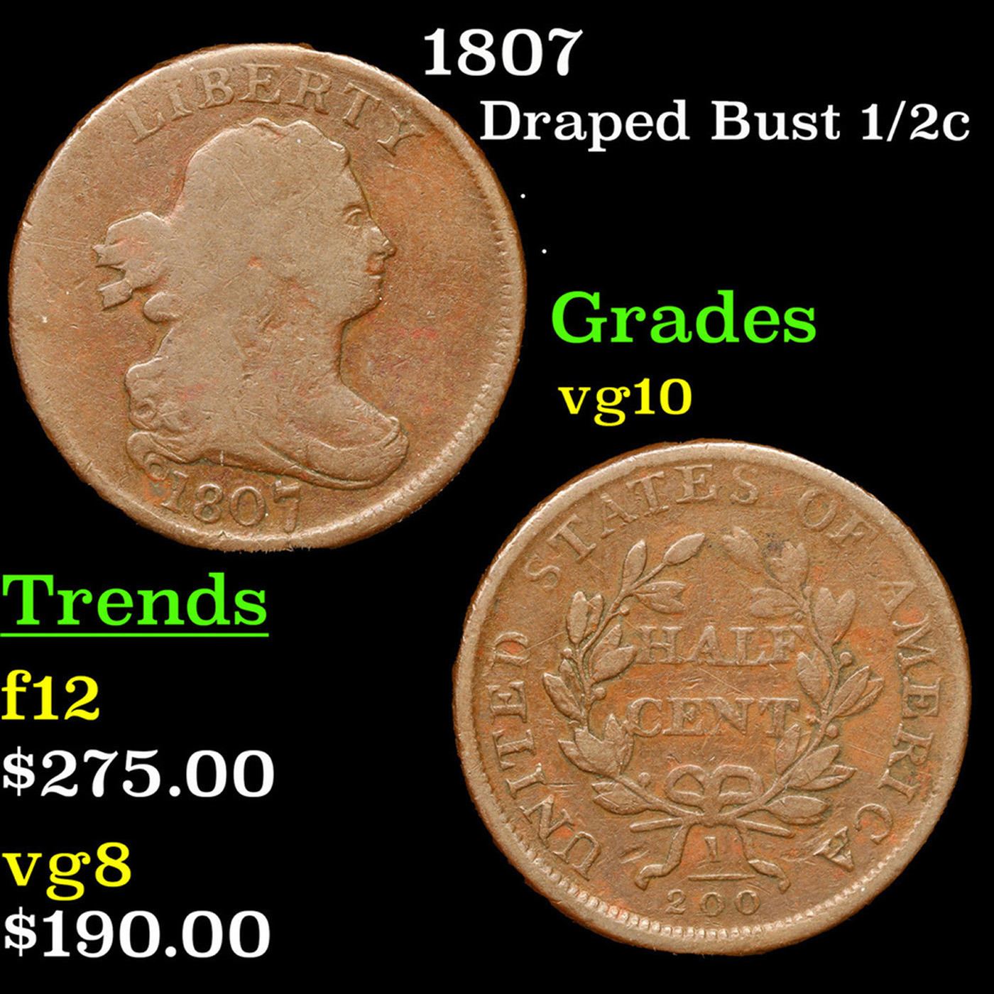 1807 Draped Bust Half Cent 1/2c Grades vg+.