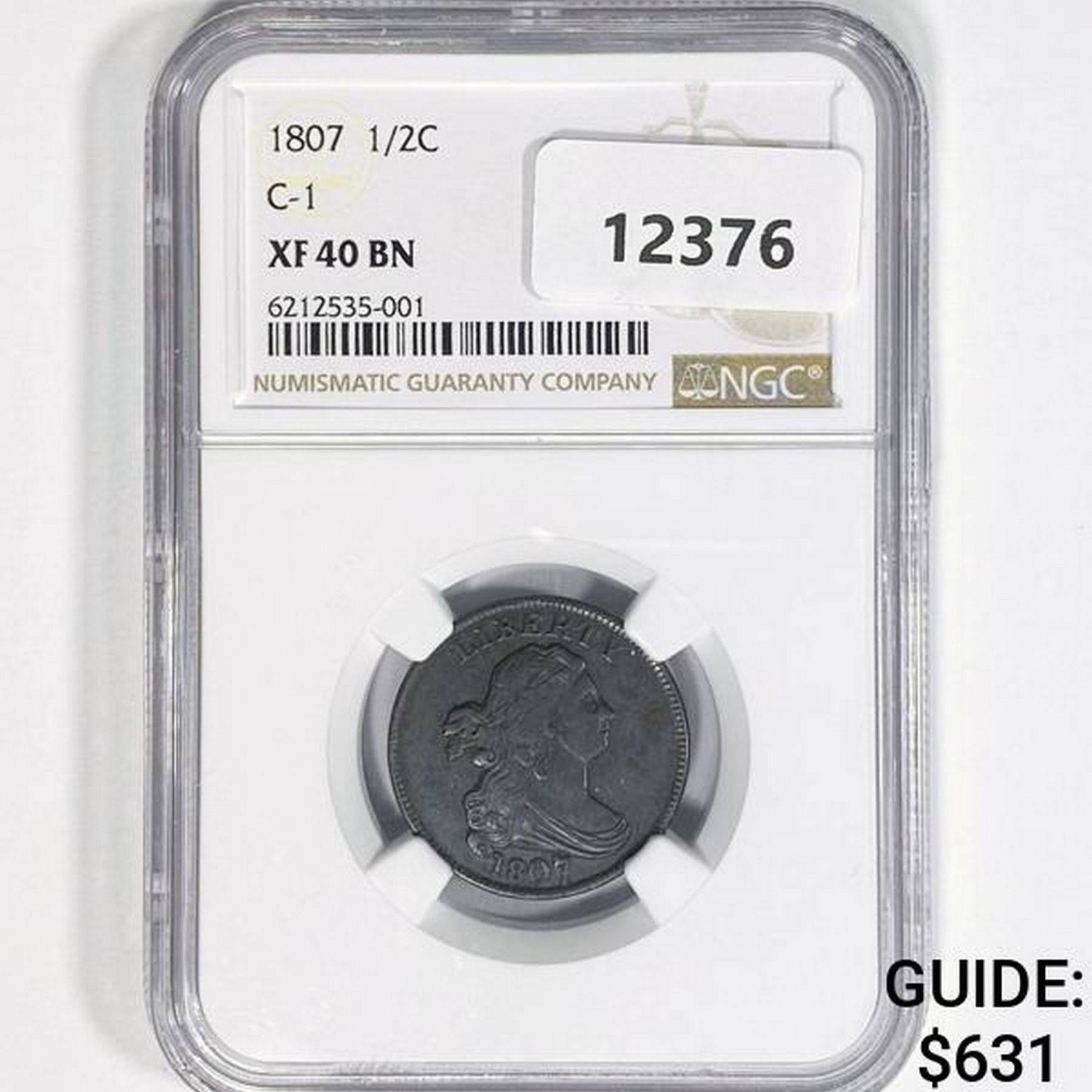 1807 Draped Bust Half Cent NGC XF40 BN